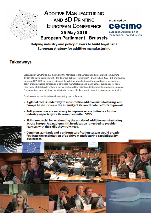 The Additive Manufacturing and 3D Printing European Conference 2016 was recently held at the European Parliament under the theme “Helping industry and policy makers to build together a European stra...